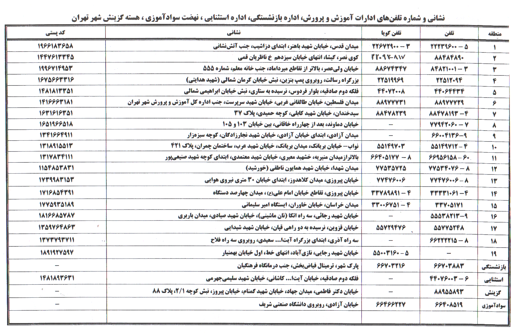 آموزش و پرورش نواحی تهران
